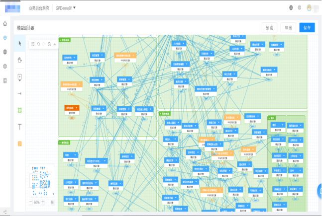 梳理完所有的业务流程、业务实体、数据实体后可以将对象作出根据不同业务域的清晰的层级划分,如下图:
